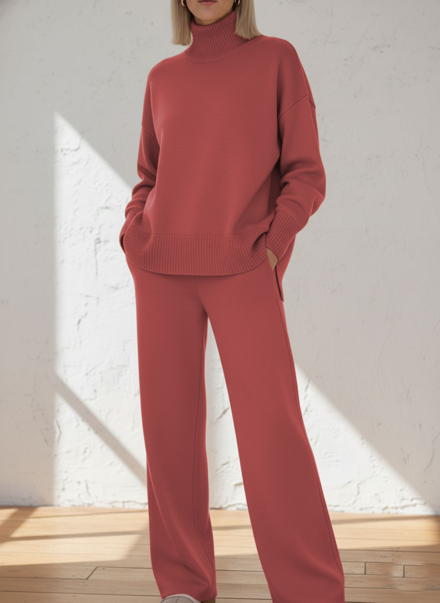 Gray-pink Casual Stand Collar Long Sleeve Top And Casual Long Pants
