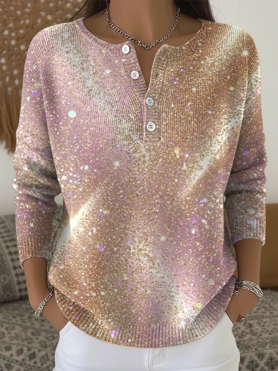 Retro Sparkling Gradient Print Buttoned Cardigan Sweater