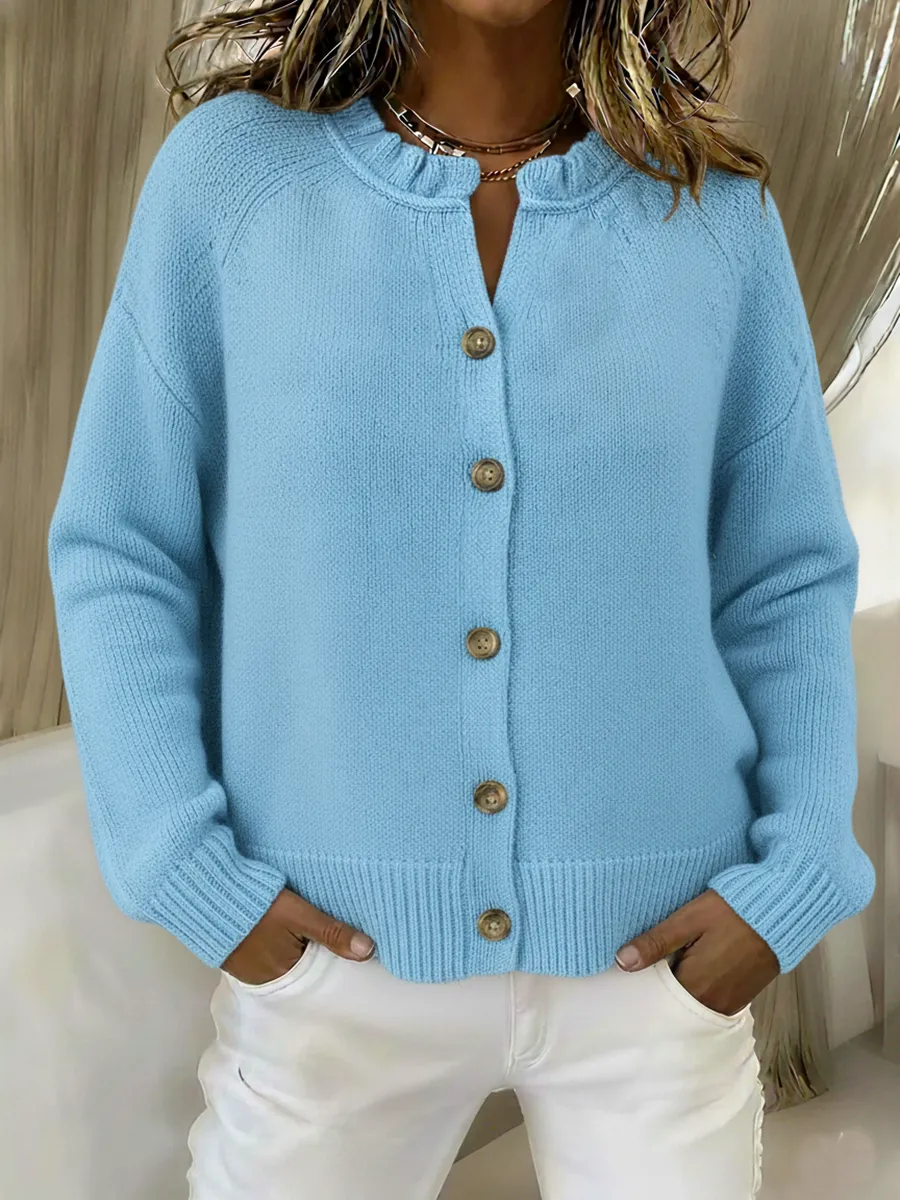 Vintage Crew Neck Button Wool Cardigan