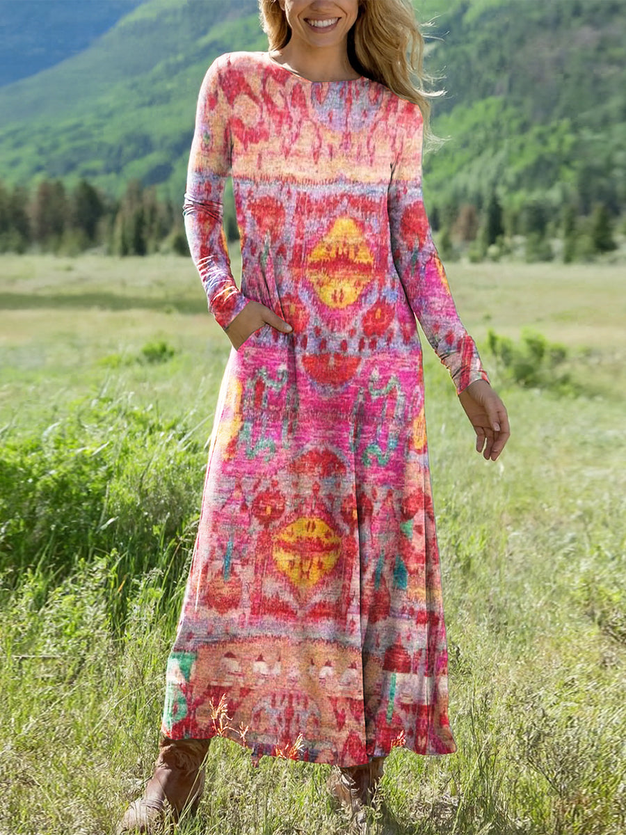 Women's Beautiful Colorful Abstract Rhombus Geometric Painting Art Print Long-sleeved Dress