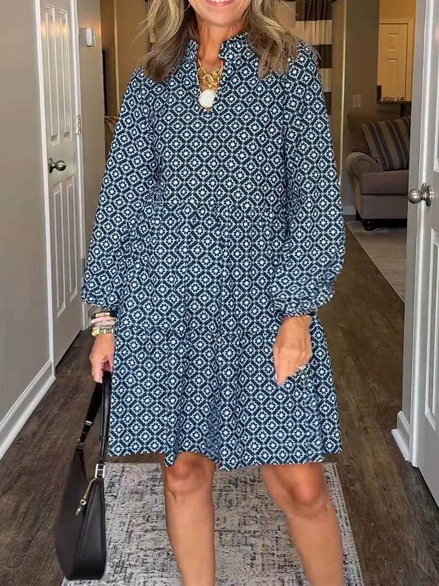 Women's Comfortable Prismatic Pattern Printed V-neck Cotton Dress