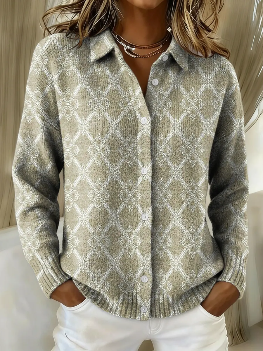 Women's Diamond Vintage Pattern Printed Collared Sweater
