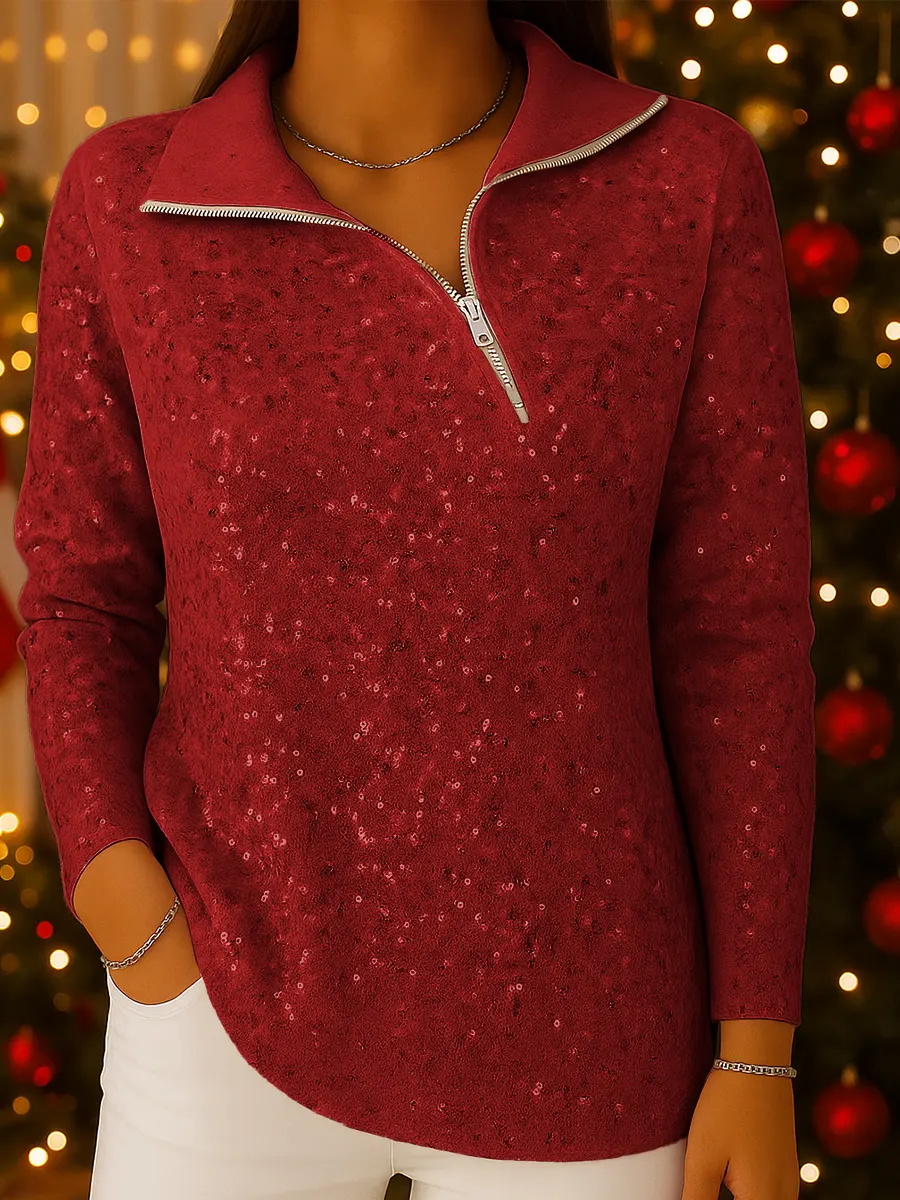 Women's Gradient Print Collared Long Sleeve Casual Loose Sequined Knit Cardigan