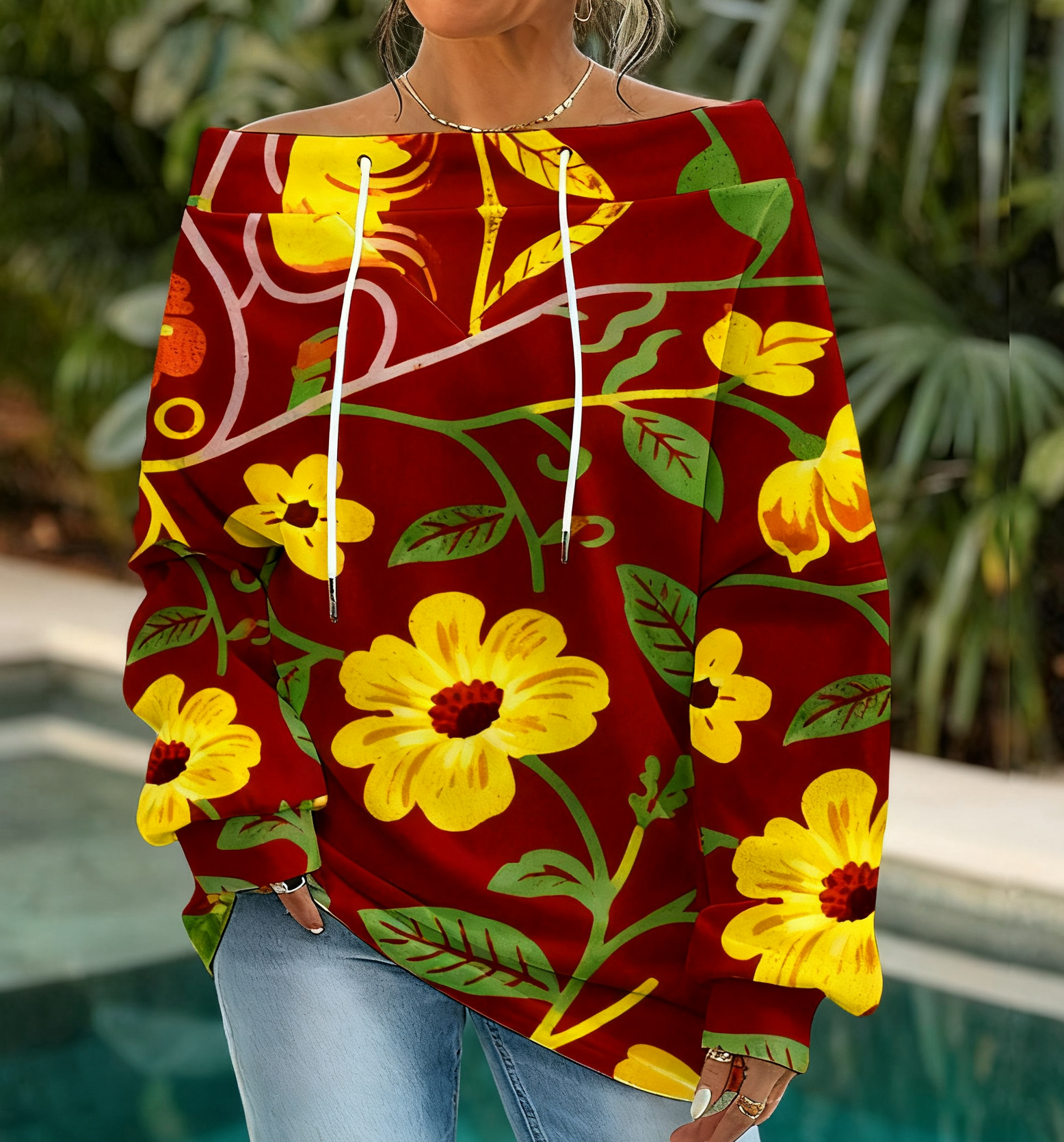 Women'S One-neck floral print long-sleeved jumper