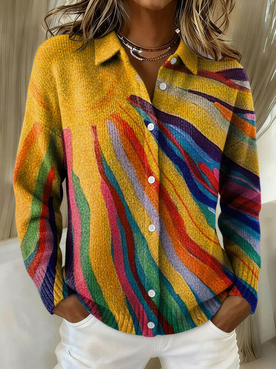 Women's Vintage Sun Pattern Print Cowl Neck Sweater